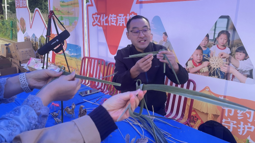 在文化传承坊,草编技艺传承人巧手翻飞,将平凡的稻草变为栩栩如生的艺术品。众多家长与孩子在此沉浸于“一粒米、一束草”的故事中,亲手编织稻草小鱼,深刻感悟到农耕文明的智慧与粮食的来之不易。